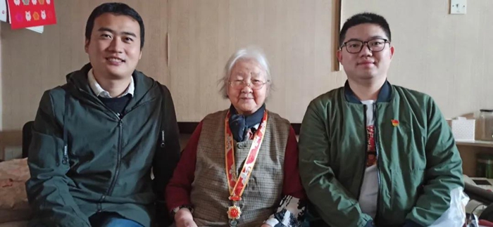 10月21日,北京市工业技师学院团委、下沉社区青年同集团老干部部的工作人员一行看望了90岁高龄的抗美援朝老兵金平奶奶,同时也为老战士金平奶奶送上抗美援朝70周年纪念章,并向金平奶奶表示敬意和衷心的问候。