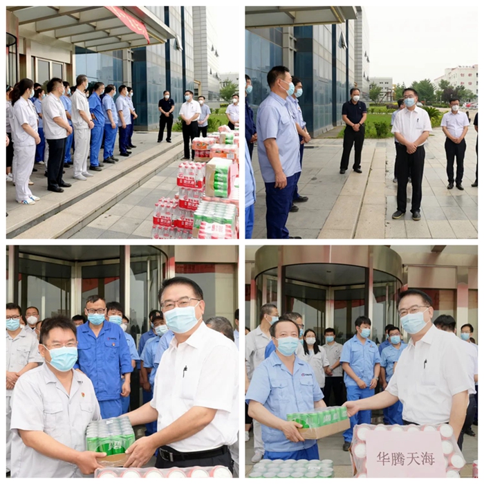 7月11日,王国华一行来到华腾橡塑公司,进车间、到班组,看望慰问坚守一线职工。王国华详细了解一线职工工作和生活情况,叮嘱他们既要高质量完成好工作任务,又要注意防暑降温,充分做好疫情防控工作。