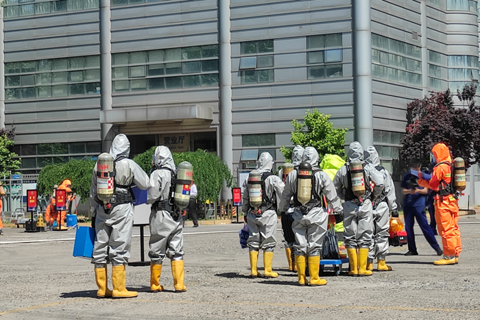 5月23日上午,在北京化工集团深入开展安全生产和火灾隐患大排查大整治专项行动之际,北普公司联合北京市消防总队核生化应急处置队、朝阳区劲松消防支队,开展了近年来规模最大的一次火灾、危险化学品泄漏、恐怖袭击突发事件大型实战应急演练。演练聚焦问题、贴近实战、效果明显,有效提升了北普公司处置突发事件的能力。