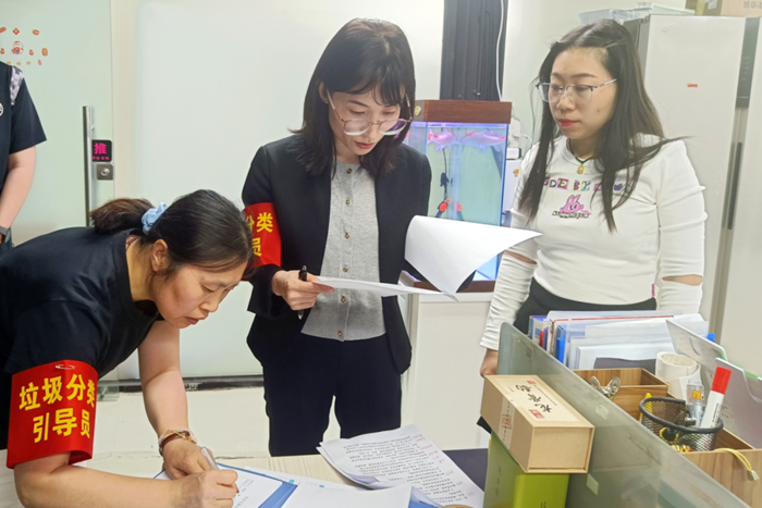 在北搪公司党委的领导下,公司建立垃圾分类专员检查机制,定期对各项目、各区域的垃圾分类容器设置是否合理、清运合同(协议)是否签订、清运台账建立是否规范及宣传引导是否到位等日常管理情况进行监督检查,发现问题,立即督促整改,不断提高生活垃圾分类的自觉性、准确率。同时号召广大党员结合“党员双报到”“桶前值守”等活动,积极投身所属社区生活垃圾分类志愿服务活动。
