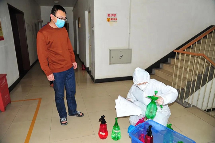 为了合理使用消毒液,华腾化工专门对保安、食堂和物业人员进行消毒液配比培训,并对消毒液进行专人发放,这一措施不仅节省了消毒液的使用量,而且减少了高浓度消毒液对人员和资产带来的伤害。
